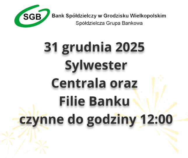 W dniu 31.12.2025r. Bank będzie czynny do godz. 12:00.